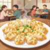 家族が楽しくお肉料理を囲んでいる様子。肥前さくらポークのモモ肉とローススライスを美味しそうに調理・食事している笑顔の家族。温かい雰囲気で、料理の美味しさが伝わるような写真。